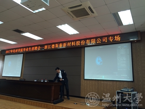 最后是企业专场招聘会环节。来自浙江正瑞科技有限公司和浙江德斯泰新材料股份有限公司的人事经理,分别对自己公司的企业规模、调教视频、发展战略、人才需求、薪酬待遇等方面做了详细介绍。两位经理通过现场问答的方式与同学们进行了交流,并受到毕业生们的热烈欢迎。