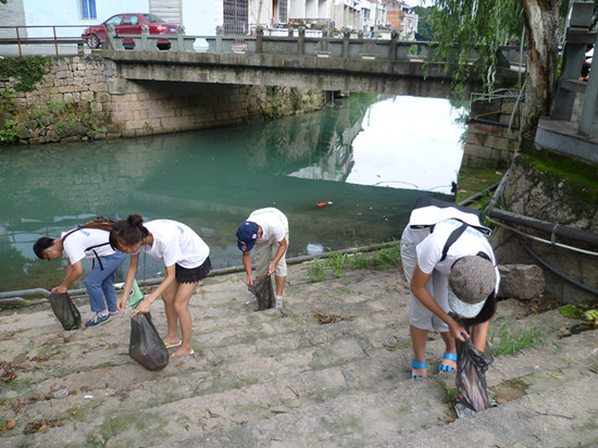 “诺亚绿舟”暑期社会实践队的队员们在茶山镇开展了环保清洁,防洪排涝活动。