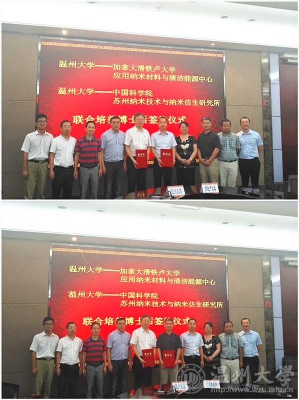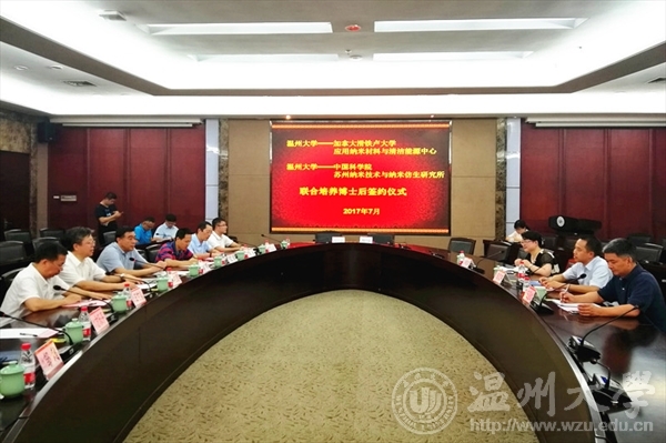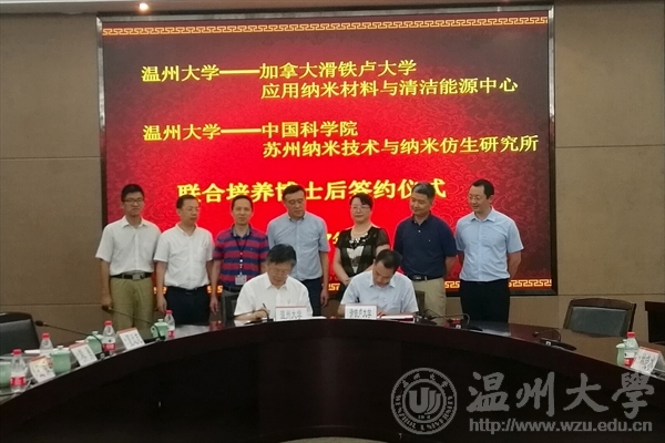 7月10日下午,我校与加拿大滑铁卢大学应用纳米材料与清洁能源中心、中国科学院苏州纳米技术与纳米仿生研究所举行联合培养博士后签约仪式。加拿大滑铁卢大学陈忠伟院士、苏州纳米研究所王强斌研究员、温州市外国专家局局长林晓冰、校长李校堃、副校长薛伟以及人事处、外事处、研究生部、化材学院相关负责人出席仪式,签约仪式由副校长薛伟主持。