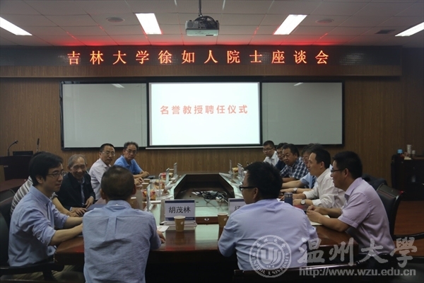 在聘任仪式后举行徐如人院士座谈会,李校长在座谈会上就温州的人文历史、温大校史、办学理念、温大优势特色以及各学院的专业建设、科研平台、国际化办学等方面向徐院士一行人作了精彩展示。随后,王院长也重点就化材学院的专业建设、师资人才、科研平台等方面做了详细介绍。