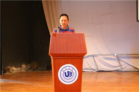 典礼伊始,化材学院院长王舜老师上台致辞。首先,王院长对学院全体师生和2014级新生表示最热烈的欢迎和最诚挚的问候。接着,王院长又着重介绍了学院近几年的发展和更新,介绍了化材学院雄厚的师资力量、精良的仪器设备、优质的教学条件和良好的科研学术学习氛围,鼓励同学们要朝着德、智、体、美全面发展的方向才奋斗努力,成为具有创新精神、创新能力和社会责任感的应用型人才。最后,王院长对新生们提了三点要求:一、要求同学们目标明确;二、积极锻炼,保持身心健康;三、学会做人,努力做一个品学兼优的人。