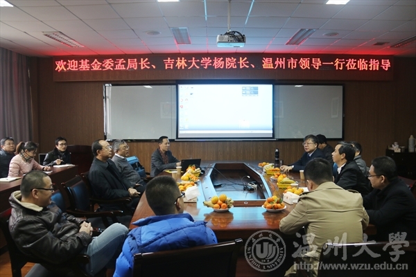 1月14日,吉林大学化学学院院长杨文胜、国家自然科学基金委计划局原局长孟宪平研究员一行来访我校。温州市副市长郑朝阳、校长李校堃分别接见杨文胜一行,双方就学科建设、人才培养、协同创新等合作进行交流。