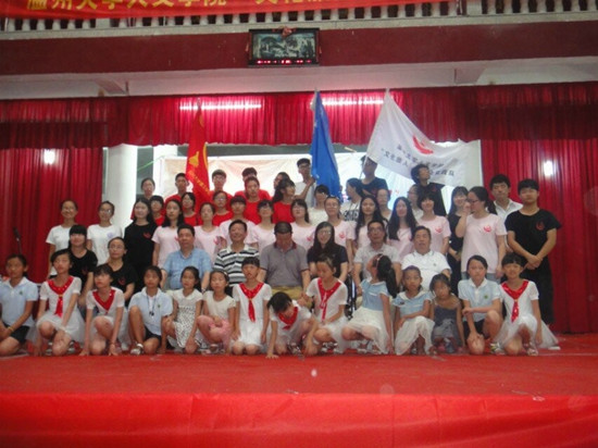 “守望”实践队、“文化旅人”实践队和“温心”暑期科普夏令营实践队合影留念。之后,“温心”队员又和参演的丽岙小朋友合影留念。就这样,白天的活动随着相机的咔擦声结束。