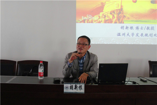 发展规划处胡新根教授担任本次讲座的主讲人。化材学院全体13级及部分12级同学参加了此次讲座。