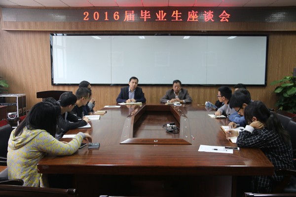 在化材楼204召开了2016届毕业生座谈会,党支部书记方乐平、毕业班班主任、教学科宋建兰老师及毕业生代表参加了此次座谈会。