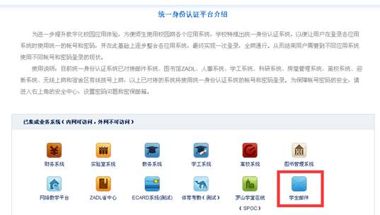 6、启用邮箱:通过身份认证平台(rz.tjsp8.net)进入,选择“学生邮件”
